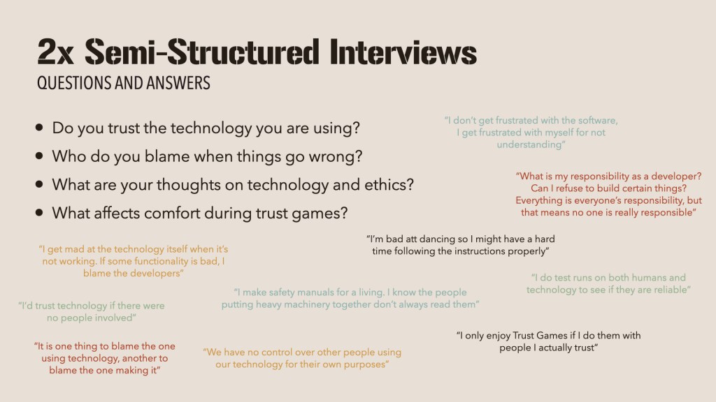 The installation is inspired by classic trust games, and has built-in bugs to make the participants question who truly owns the responsibility when our technology acts in unintended ways.